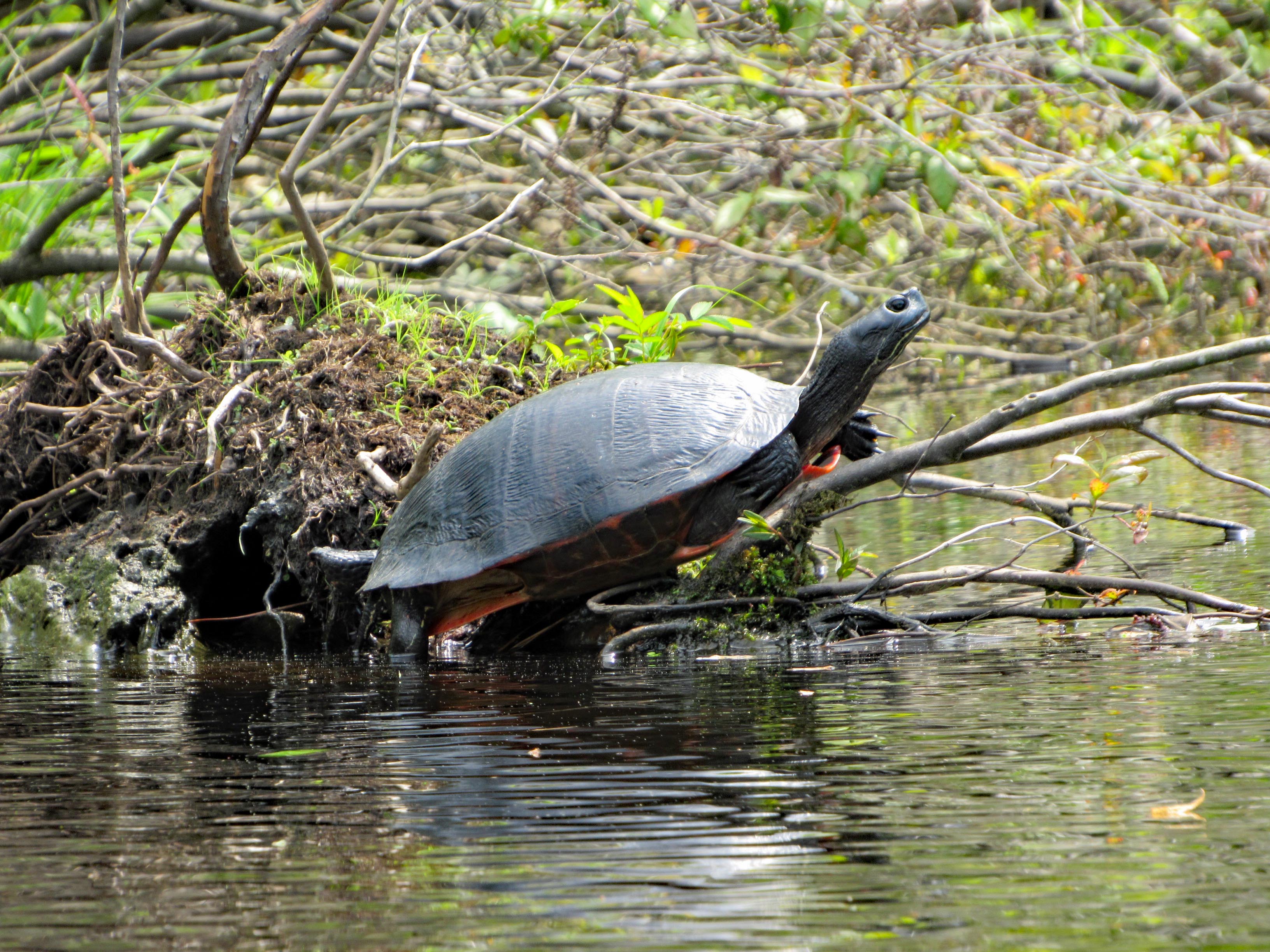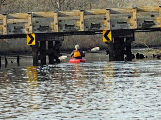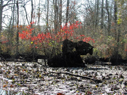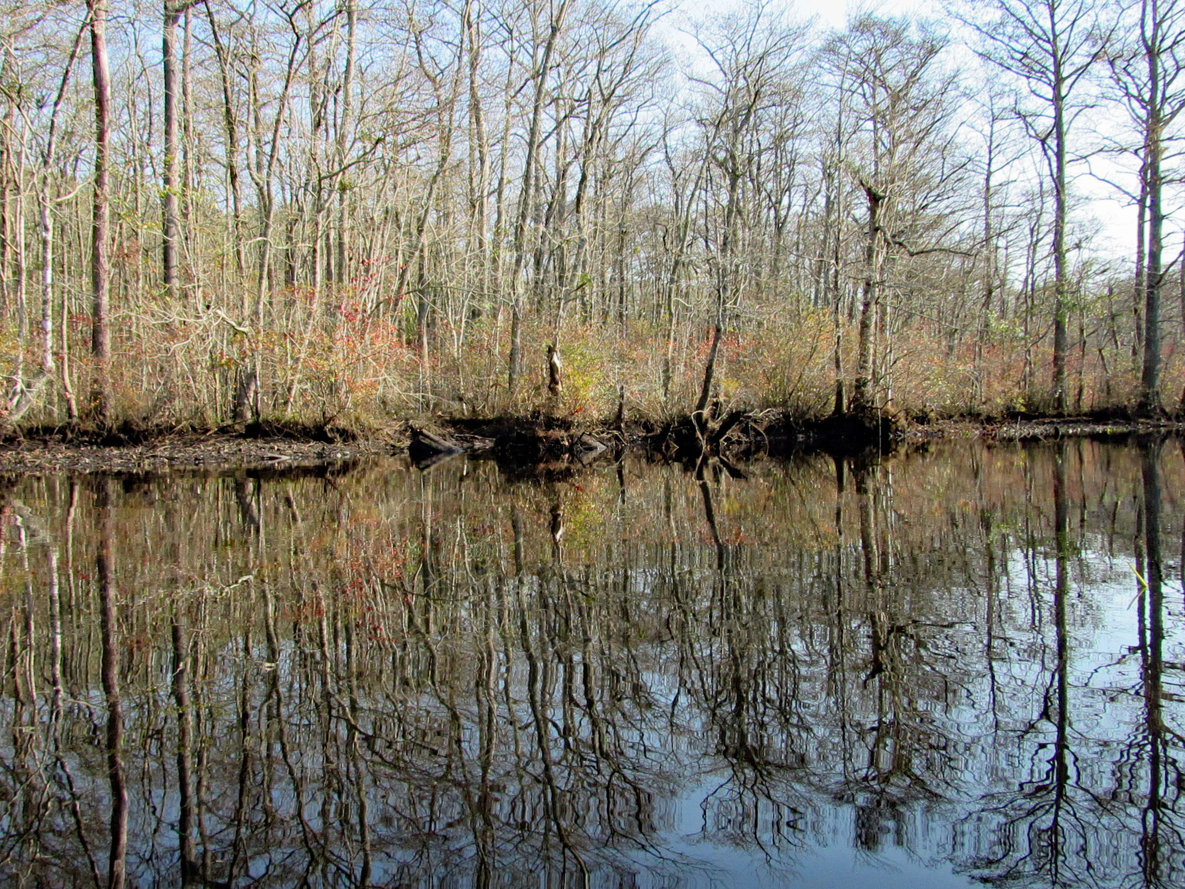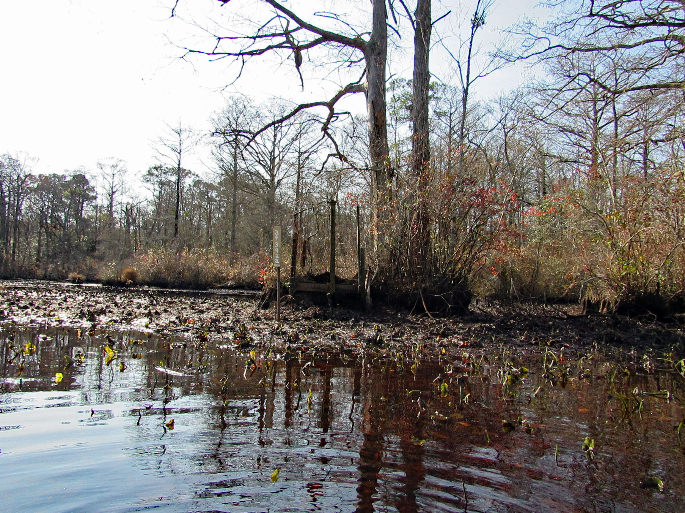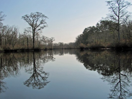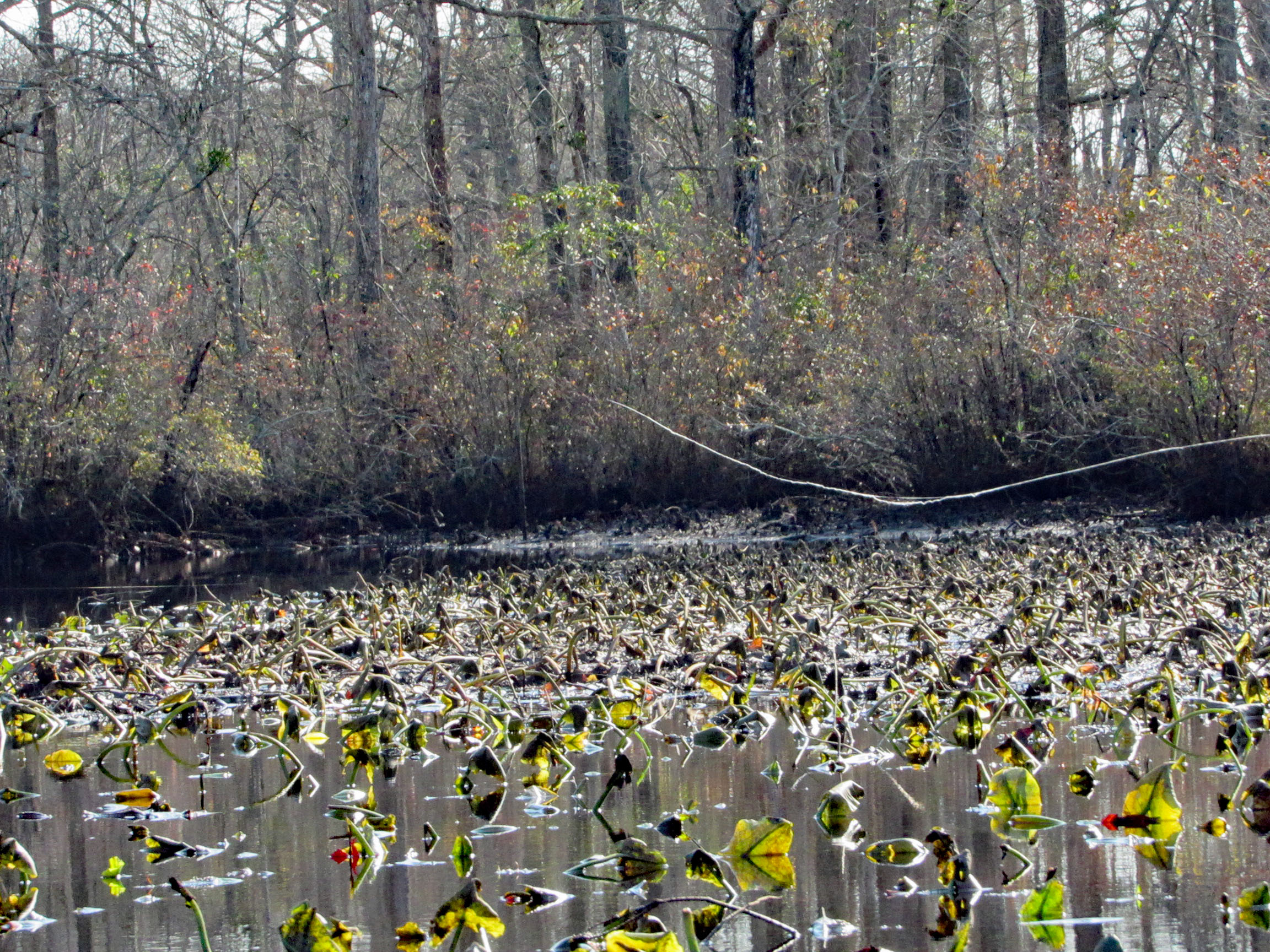 The whole park seems like a giant swamp. Kathy’s brother Phil had me watch a show about the Pocomoke on Delmarva Life, a TV show down here – Back in the 1930’s-40’s they dredged the river and put the spoils along the shore, unbeknownst to them that the dikes they created stopped mother nature from holding and filtering the water before sending it down stream to the Bay, causing damage to the ecosystem. Right now they are in the process of removing the dikes for nine miles up near Rte. 50, to reverse 80 years of bad planning. Here is what the area should look like.