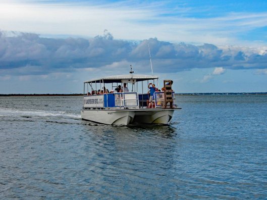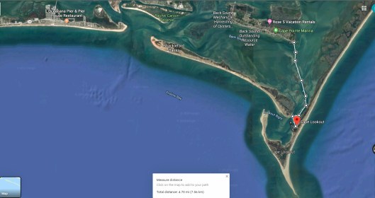 it was about a 4-1/2 mile ferry ride, making one stop at Shackleford Banks. People like to stop there and look at the 100+ wild horses on the island. Kathy and I visited the western end of this island back in June. Nice trip. Didn’t see any horses though.