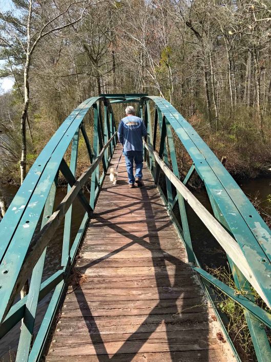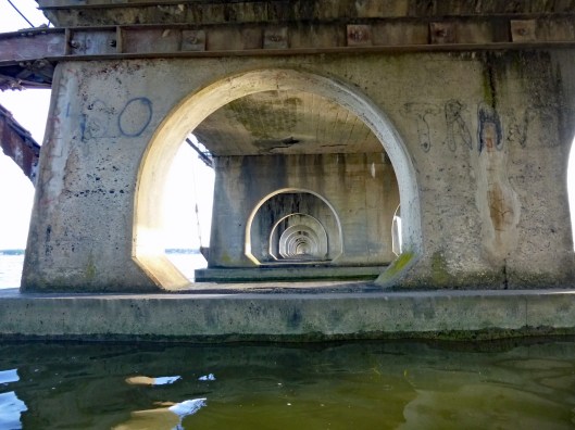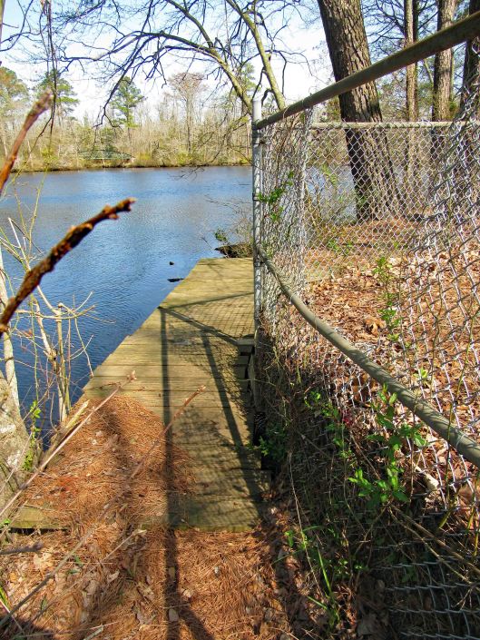 View heading up the ramp. The white placards on the post are names of the donors who contributed to the rebuilding.