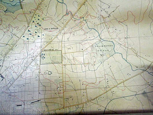 And this map portion that shows the Johns Hopkins property before it became Lake Clifton, and a race track in the lower right corner. In a few years from this map’s date, a Baltimore County water filtration plant will be built near the track; using ozone filtering technology. (I forget off hand what the date was – maybe 1907?)