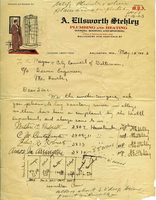 I tried to do some research in the one building by the smokestack years ago. I even volunteered to clean the mess up and document everything, but after a few years of asking and getting no response, I said forget it. There are a lot of the early sewer contracts on the 3rd floor. (#6)