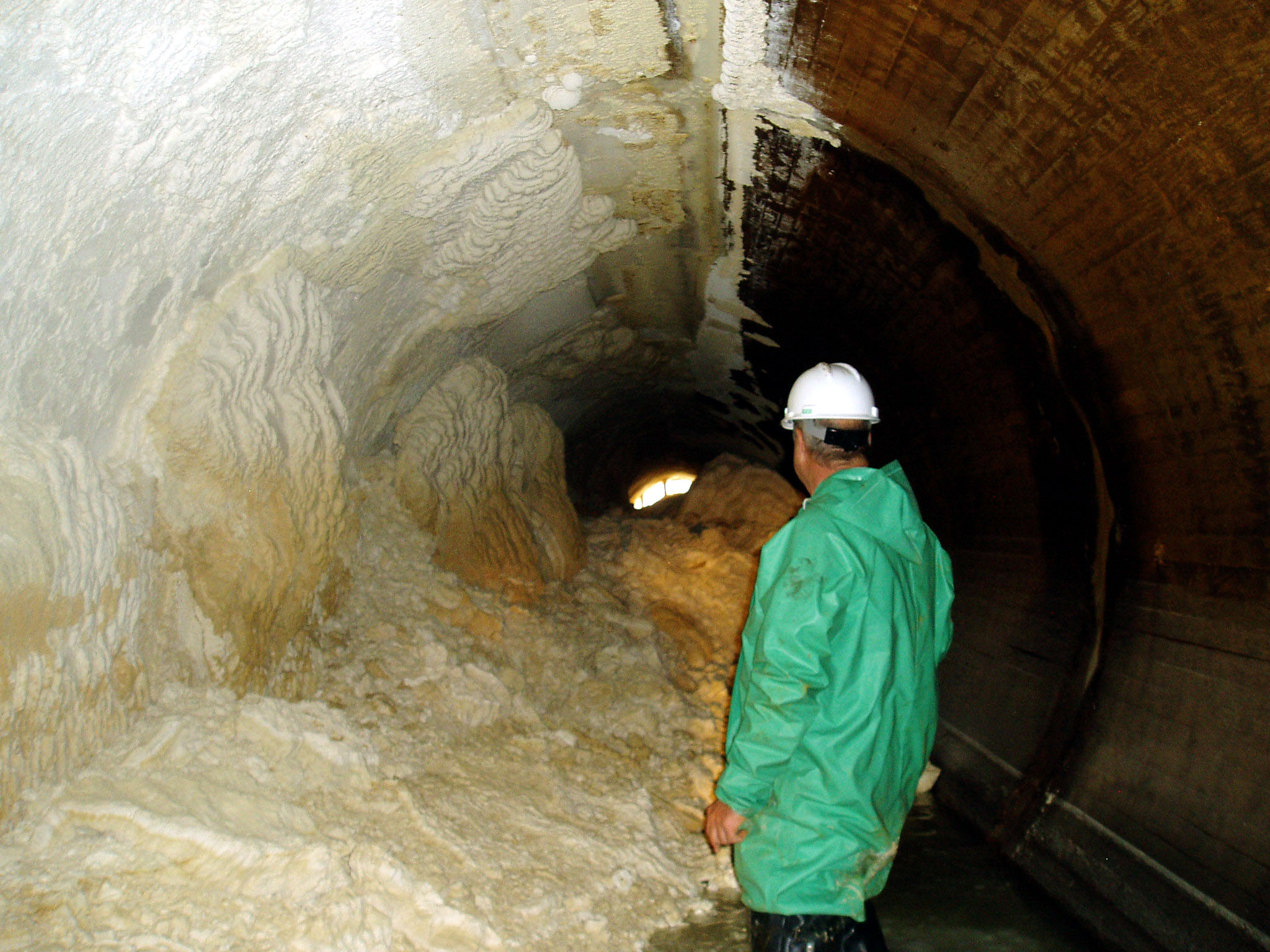 Here is what was the plant effluent when the plant was first built. Wooden Pipes.