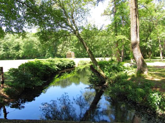 This was a 3.6 mile or a 4.1 mile hike, depending on which map you use, in the Pocomoke State Forest. There is also a Green Trail (4.4 mi) and a Blue Trail (5.2 mi) in the same area. We chose the White Trail because it heads towards a creek – Corkers Creek. The entrance is across Rte. 113, from Shad Landing. Nice empty parking lot.