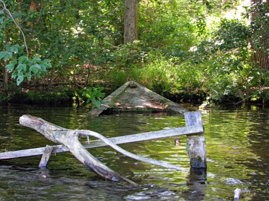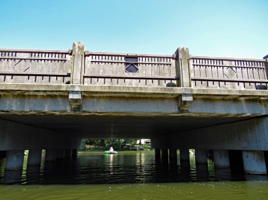 As I said, it was dreary out. This is leaving the boat launch, looking towards the train bridge. Last year we headed there after going left up into a cove. This year we explored to the right – Gunpowder Rivers.