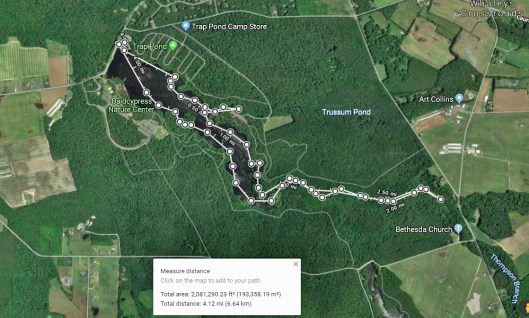 This was our path. About 3.75 miles and took 2-1/2 hours. We love to stop and look at everything nature has to offer. It was a lot!