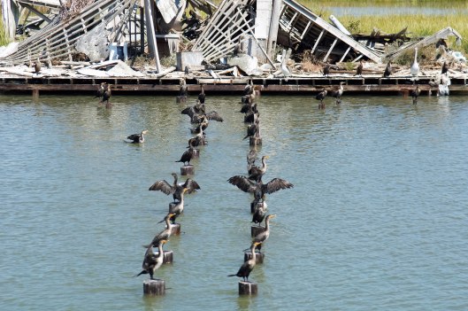 Passing a nature reserve island before Smith Island, the birds were all lined up, ready to dance.